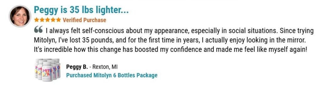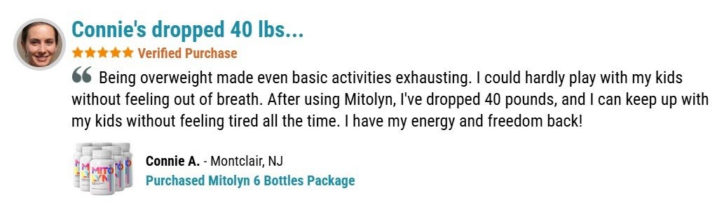 “For years, I looked in the mirror pretending everything was fine… but deep down, I knew it wasn’t. The stubborn fat, the constant fatigue, the bloating — nothing worked. I had tried it all: those ‘magic pens’ that promise quick fixes but only left me shaky, nauseous, and feeling poisoned from the inside out. I felt trapped in a body that no longer represented me. I avoided mirrors, fitted clothes, and even family photos. The shame was silent — but devastating. When I discovered Mitolyn, something stood out to me: it promised results from the inside out, respecting the body’s natural rhythm. I decided to give it a try — and today, I can proudly say it was the best decision I’ve ever made. My energy came back, my clothes fit again, and most importantly, I started loving my reflection once more. That’s why I’m so happy to share my experience with thousands of people. I know what it feels like to lose hope — and I know how incredible it feels to get your life back. I chose the 6-bottle package because I wanted the full transformation — and I highly recommend you do the same. Because in the end, there’s nothing more empowering than feeling proud of yourself again.”